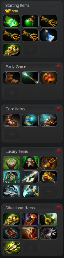 Early on you want to pick up some basic Boots of Speed, a Magic Stick (which you’ll later upgrade into a Magic Wand using the Iron Branches you started out with) and get some good cost-efficient stats from an early Bracer pick-up.