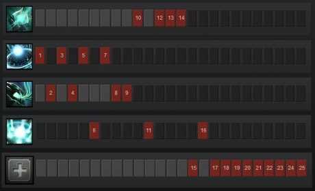 OD’s ultimate, Sanity’s Eclipse, is always skilled (levels 6, 11 and 16). This deals damage to enemy heroes in a large area of effect based on the difference between their intelligence and OD’s intelligence.