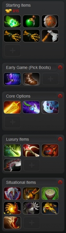 This gives you plenty of starting regen, which should see you through the early laning stage, a Stout Shield to block harass, and Iron Branches to give you some starting stats.