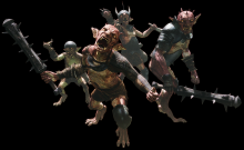 They tend to mimic humans, as they will have weapons, such as clubs, swords or even ranged ones like torches. Some Goblins have horns and will call for backup using it, so they should one of the first ones killed. They are slightly weak to fire and ice, but resist dark attacks. Sometimes they will have a leader, usually the one with the most armor, which when killed, will make the other goblins not as cohesive in their attacks.