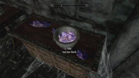 The soul gem fragments are going to be along the wall just after you go up the first set of stairs. It will be sitting on a low set of cabinets in a silver bowl surrounded by other Soul Gems.