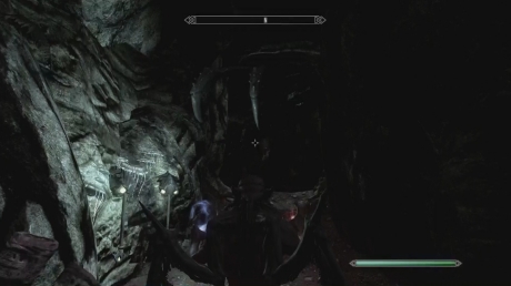 Darkfall Passage can be kind of dark so if you have it, feel free to make use of the Lord's Vampire Sight. Make your way along this long cave and watch out for the Chaurus Hunter that erupts from the pod on the left side of the hallway. These fly and are faster but they are otherwise just weaker versions of the chaurus you already know of. Continue through these tunnels killing the chaurus and falmer that you come across until you find yourself in a falmer village.