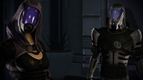 The Quarians are a nomadic race with an aptitude for technology. They were exiled from their homeworld after losing a war against the Geth, a synthetic race that they created, and now live mostly in the Migrant Fleet, a collection of ships floating through space. Their original homeworld is Rannoch. In Mass Effect 3, they can be wiped out, allowed to destroy the Geth, or live in harmony with the Geth. Notable Quarians include Tali’Zorah nar’Rayya and Kal’Reegar.