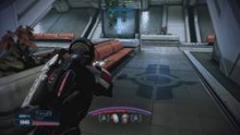 After you've cleared the area of all enemies (including turrets), head down to the lower level and head indoors. Inside this hallway, grab the med kit to the right and check the computer on the bench to the left. When you come outside, you will find another infinite spawn area. Immediately as you come outside, check the left back area for an engineer running right. Try to take him out quickly with an Overload and biotics or bullets before he sets up a turret. After that, try to clear the lower area as quickly as possible and head for the base of the stairs. At the base of the stairs in a structure you can use for cover. When you feel comfortable, start making your way up the stairs, clearing enemies as you go. When you get to the top, the enemies will stop spawning. Go through the door on the lower level and through the door at the end of the hall.