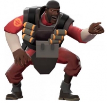 The Demoman is a cyclopes (only one good eye) explosive expert from Scotland is a unpredictable force on the battlefield. He uses grenade launchers, stickybomb launchers and a group of close ranged weapons used to decapitate those unlucky enough to meet his blade in battle. Because of its odd properties stickybombs can be used to to defeat enemies in very indirect combat, they can also be used to get a jump boost with a stickybomb jump.
