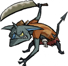 Bokoblins are a common enemy that is found throughout Wind Waker and come in three different varities; green, blue and pink. The pink kind carries a telescope, while the blue one will usually have either a Boko Stick or a Machete. The green ones are the toughest ones, since they have the most health and carry a shield and a Machete.