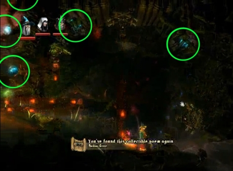 Kill the four spiders for Monster Experience x3 and then grapple up the leftmost platform to spot Level Experience x3 trapped behind some wooden planks on the ceiling that can be shot down. Drop back down to the floor and continue right through the cobwebs to a hidden room with Level Experience x3 and a Collectible Painting. After getting the painting, break down the right wall to find another Level Experience x5.