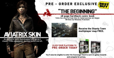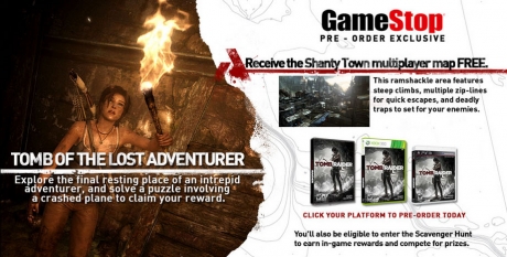 All orders from GameStop will include the Challenge Tomb, a standalone experience that offers various environment puzzles to “test Lara’s brains and brawn.”, and the Shanty Town multiplayer map, which features steep climbs, multiple zip lines and deadly traps for your enemies.