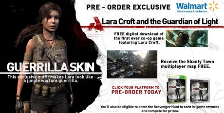 All orders from Walmart will include a digital download of Lara Croft and the Guardian of Light, access to a Scavenger Hunt, the Shanty Town Multiplayer Map and an in-game exclusive Guerrilla Skin outfit.