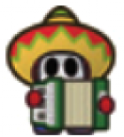 The Accordion Guy is only found in one level, 2-2: Yoshi Sphinx, where it is accompanied by a Sombrero Guy and Maraca Guy. It only has one attack, where it throws its sombrero at you. It has one more move, where it can play its instrument, healing 10 HP for itself and its allies. If the Accordion Guy is the last enemy left alive, it has a chance to run away.