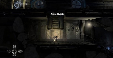 Run right and jump up the lower of the two ledges to meet Daddy and grab the Umbrella. Head to the top of the maze-like mansion and use the umbrella on the Attic Hatch and get the Cave Painting inside.