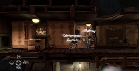 Head through the heavy door and drop down and run right, taking the upper ledge, to reach a set of three levers. Activate all three and then use the Twins special ability to hold the lever while they enter the gate and head for the house.