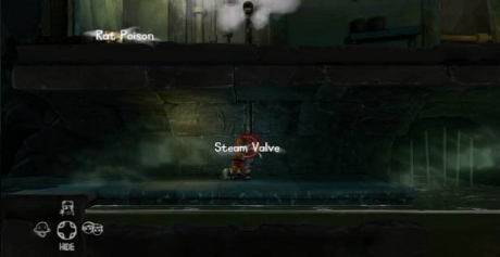Time to switch to another party member, and head left and then across to a Pile of Bones to grab a Femur. Continue your downward descent, getting a Cave Painting and head through the dog house to reach the area under the house and turn the Steam Valve.