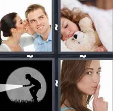 The answer to level 64 of 4 Pics 1 Word is Quiet.