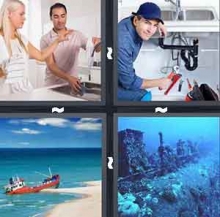 The answer to level 89 of 4 Pics 1 Word is Sink.