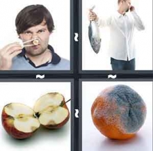 The answer to level 611 of 4 Pics 1 Word is Rotten.