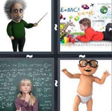 The answer to level 736 of 4 Pics 1 Word is Genius.