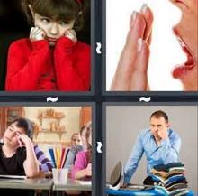 The answer to level 791 of 4 Pics 1 Word is Bored.