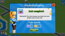Money and Megabucks are the two resources that will be in shortest supply. Completing tasks and taxing your citizens is a quick way to make some dough. Money is replenished naturally throughout the game and you can make serious money through manufacturing however this can take up hours of real-world time. When 'Congratulations' messages pop up click the option to share with friends as this gives you extra rewards.