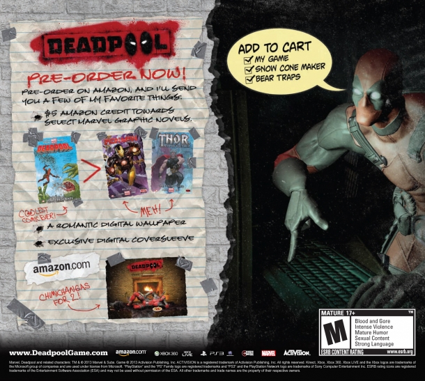 Deadpool is a third-person action game based on the Marvel character, Deadpool. The game is developed by High Moon Studios and published by Activision for the PlayStation 3, Xbox 360 and Microsoft Windows. Co-written by the former comic writer Daniel Way, along with High Moon Studios, and is based around Deadpool's mission to assassinate a corrupt media magnate.