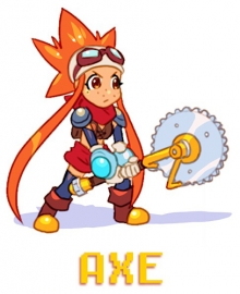 The Axe, also known as the Pizzaxe, is the most powerful weapon in Esmy's arsenal. But, although hard-hitting, its long wind-up time makes it a potential liability.