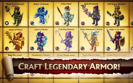 Gold is the more common type of currency. It is earned in the Arena, boss battles, guild wars, quest completion, revenue from buildings and chance chests. In addition to buying items from the shop, gold is also used to buy buildings and expansions, create guilds, craft and fuse armor and earn certain achievements.