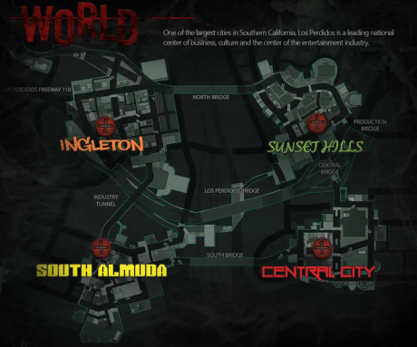 Central City is one of the four key areas of the city of Los Perdidos found in the game, as shown in the game's world map above. Little is currently known of the area beyond that, except that it is likely the heart of the city and the main population base.