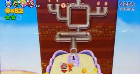World 4-2 is another tower-like stage, with the highlight being the clear pipes. In fact, a majority of the time in the level will be spent in these clear pipes. Mario and the others can go through these clear pipes to progress and find a few secrets. Of course, there will be enemies inside of these pipes, as well as during the regular portions of the level, including Fuzzies, Piranha Plants, and Venus Fire Traps.