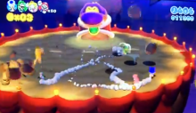 When the boss pops out of the ground, it will send rocks flying into the air that will come down and attempt to hit the characters. Avoid them and then smaller snakes will appear out of the ground, with plates on top of their heads. Players will need to get high enough from one of the lesser snakes and jump on top of the main snake to hit its weak spot. The pattern starts over from the beginning and once it has been hit 3 times, it will be defeated.