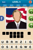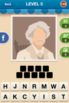 Hi Guess Who - Part B The answers for Level 5 are: CARLOS SANTANA MADONNA GEORGE W BUSH ANGEL WALT DISNEY OZZY OSBOURNE PSY MARK TWAIN EMMA WATSON KENNY G Jump to a section: Home Releases Credits Overview Walkthrough Achievements Cheats Share Part B with others < Prev: Part A Next: Level 6 > Last updated by Lepeka82, 20th July Do you want to earn money creating pages just like this? Gamewise is currently looking for writers, find out more here. Around the Network Hi Guess Who Brainwaves View all → Hi Guess Who Walkthrough Level 1 Level 2 Part A Part B Level 3 Part A Part B Level 4 Part A Part B Level 5 Part A Part B Level 6 Part A Part B Level 7 Part A Part B