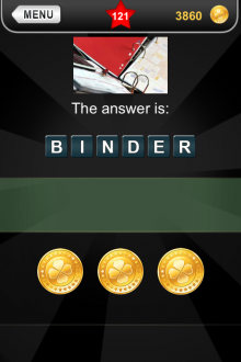 The answer to level 121 in What's that Pic - Searchlight is BINDER.