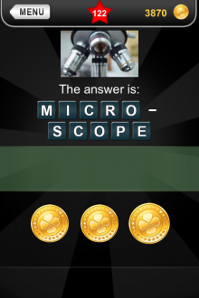 The answer to level 122 in What's that Pic - Searchlight is MICROSCOPE.