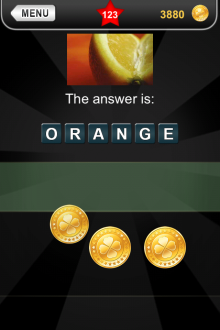 The answer to level 123 in What's that Pic - Searchlight is ORANGE.