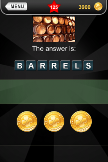 The answer to level 125 in What's that Pic - Searchlight is BARRELS.