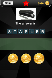 The answer to level 127 in What's that Pic - Searchlight is STAPLER.