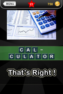 The answer to level 21 in What's that Pic - Searchlight is CALCULATOR.