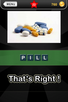 The answer to level 22 in What's that Pic - Searchlight is PILL.