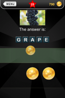 The answer to level 25 in What's that Pic - Searchlight is GRAPE.