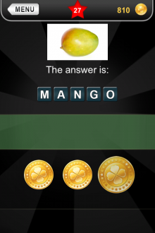 The answer to level 27 in What's that Pic - Searchlight is MANGO.