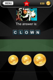 The answer to level 29 in What's that Pic - Searchlight is CLOWN.