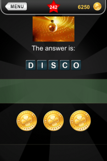The answer to level 242 in What's that Pic - Searchlight is DISCO.