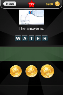 The answer to level 243 in What's that Pic - Searchlight is WATER.