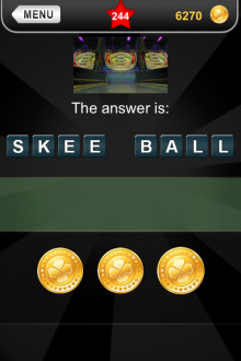 The answer to level 244 in What's that Pic - Searchlight is SKEE BALL.