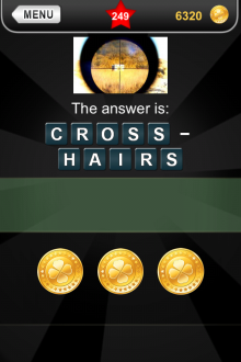 The answer to level 249 in What's that Pic - Searchlight is CROSSHAIRS.