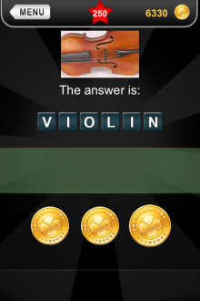 The answer to level 250 in What's that Pic - Searchlight is VIOLIN.