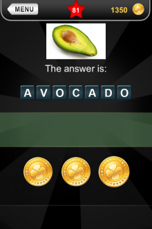 The answer to level 81 in What's that Pic - Searchlight is AVOCADO.