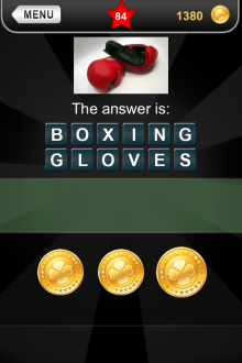 The answer to level 84 in What's that Pic - Searchlight is BOXING GLOVES.