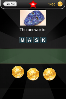 The answer to level 86 in What's that Pic - Searchlight is MASK.