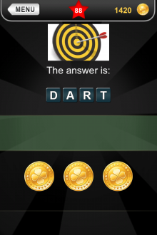 The answer to level 88 in What's that Pic - Searchlight is DART.