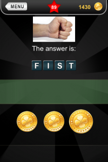 The answer to level 89 in What's that Pic - Searchlight is FIST.